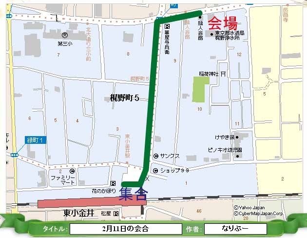 会場が確保できましたので募集いたします。 日時 2009年2月11日 13時〜21時 会場 小金井市婦人会館 集会室A (小金井市梶野町5-10-32) 地図:http://labs.mapion.co.jp/chizugaki/#/prev/39210/ 持ち物:PSP、モンハンソフト(モンスターハンターP2G) ACアダプター できれば延長コード HR、PSの低い参加者に対するいたわりの心 持ってきてはいけないもの: 改造データ、改造データでプレイしたデータ 集合時間 2009年2月11日 12時50分 集合場所 JR中央線東小金井駅北口