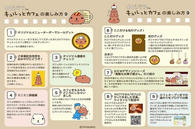 【カピバラさんキュルっとカフェ】 場所:恵比寿 TOWER CAFE カピバラさんとタワーレコード直営カフェ「TOWER CAFE」のコラボが決定しました。 その名も「カピバラさんキュルっとカフェ」です。期間中、カフェがカピバラさんワールドに染まります。その他、カピバラさんカフェ限定オリジナルメニューや限定待受けの配信、カピバラさんグッズの販売、バンダイガシャポンの新商品の先行発売も行います。是非タワーカフェでカピバラさんともふもふしてみて! 期間中カフェの情報満載のコラボサイトがオープンします。サイトにアクセスして待受け画