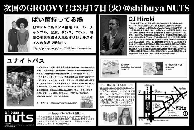 DJ:BUNTA(DMC JAPAN 2008 BATTLE部門優勝、DMC WORLD 2008 BEST4),T-FLOW(SUN RARE RECORDS),JIJI a.k.a taichi,TANA