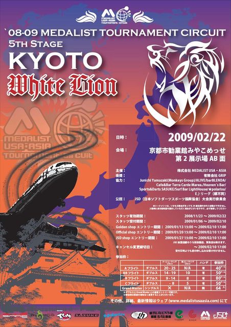08-09のホワイトライオンのエントリーはまだ募集中です☆ ホームページ http://www.medalistusaasia.com/event/20090222kyoto/20090222kyoto.html ショップエントリーの締め切り 2月10日 スタッツ受付 2月10日 手順 1.01/Criketあわせて10ゲームのスタッツを取得、レーティングフォームに必要事項を全て記入しショップへ提出してください。 2.ID・Ratingリストが公開されますので、ご確認下さい。HP公開は随時行う予定ですが、お時間をいただく場合もございますのでご了承下さい。 3.ID・RatingリストのID・Ratin
