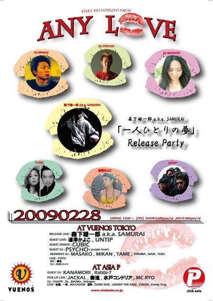 PRICE: Entrance¥3000with1DRINK with flyer¥2500with1DRINK
