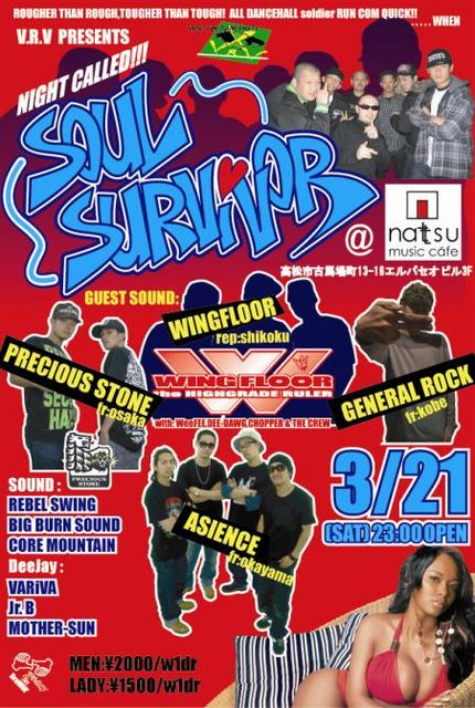今回のSOUL SURViVORは香川からWING FLOOR、大阪からPRECIOUS STONE、神戸からGENERAL ROCK、岡山からASIENCEを招いてのbig danceです!!