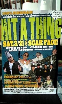 ☆100%REGGAE☆ SUNSHINE.ENT&BACK YARD MOVEMENT.PRESENTS ★HITA.THING★ SAT.3/21@ スカーフェイス OPEN.18:00〜CLOSE.25:00 ADM.1500YEN (要1DRINK ORDER) 先着20名にステッカー プレゼント!! ★SPECIAL★ GUEST.DEEJAY FAT-SMITH fr.CHOMORANMA 男爵ディーノ fr.SPRING DAYS ☆SPECIAL☆ GUEST.SOUND FIRE CORL fr.kitakyuushu SPRING DAYS fr.FUkUOKA G-STATION fr.FUKUOKA ◎SOUN
