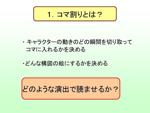 僕が主催で、絵描きオフを開催したいと思います。 概要としては、 会議室の一室を借りて、絵描きが集まってそれぞれ絵を描いたり 交流をしたりするものです。大きい紙に、お題を決めて 皆で描いていくのも面白いかなと思っています。 それともう一つ。 せっかく会議室を借りたので、プロジェクターも借りてきて、 絵を描く勉強会をしたいと思っています。 前回も開催したのですが、そのときには僕が 漫画のコマ割と視線誘導の話をしました。 今回の内容も大筋としては同じになる予定です。 ですが、前回よりもわかりやすく、ボリュームも増