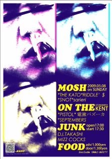 ★THE KATO ★RIDDLE'$ ★PISTOL ★電激バズーカ ★SEPTEMBERS ★SNOT ★sarieri ★DJ TAKASHI みずコックス open 17:00 start 17:30 adv \1000 door \1300(ドリンク別)+うまい棒 宜しくお願いします!!