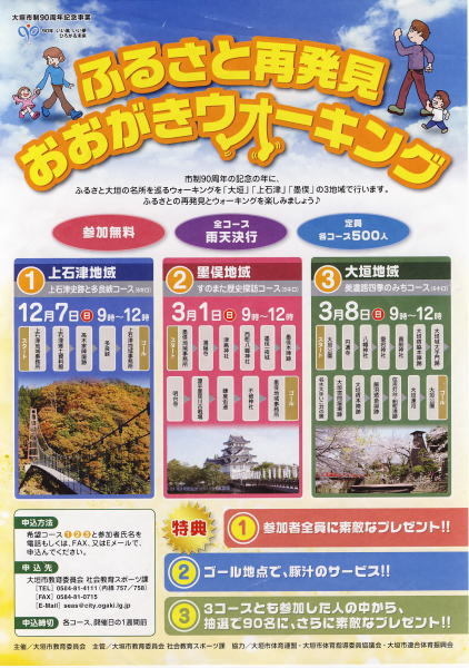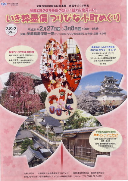 早春墨俣フリーマーケットINすのまた出世市 日時:平成21年3月1日(日曜日) 午前9時〜午後14時 場所:大垣市墨俣町上宿473-1 墨俣地域事務所駐車場 ☆出店募集 40ブース ☆手持出店(間口3m×奥行2m) 車出店(間口2.35m×奥行7m) ☆出店料金 800円(手持出店) 1500円(車縦置出店) 当日払い ☆住所 名前 電話番号 出品内容をお知らせください。 ☆申込電話番号 090−9268−9623 ☆メールフォームにて申込みできます。 ☆岐阜県在住に限ります。(他人名義はお断りいたします。)