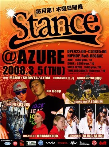 今週の木曜日5日はいよいよ毎月第一木曜日開催の『Stance』@AZURE(http://www.orbit2004.com )