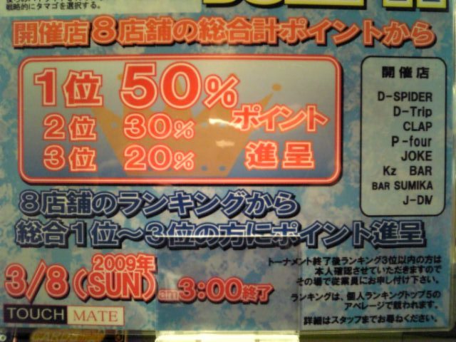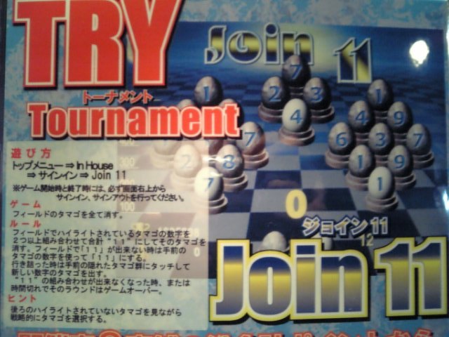 カウンターゲーム ディーラー Wildさん ダーツマシン ディーラー Blue Cornさん 共同イベント 「Wild&Blue Cup」 当店設置のカウンターゲーム「Touch Mate」に搭載される「Join11」という ゲームで系列店舗7店のトップに立てば、50%ゲット! なにが50%? それは店頭で詳しくお話致します♪ 暗算に自信のある人 どんどん挑戦しちゃってください