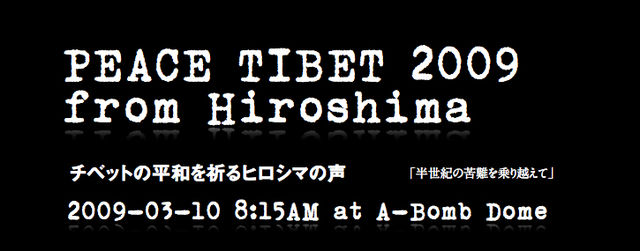 ※宇宙犬さまよりアドバイスを頂き、新たに立てさせていただきます。 大変急ですが広島で下記イベントがあります。 3月9日(月)10日(火) 広島原爆ドーム前 【前夜祭】3月9日(月)PM6:00 チベット問題犠牲者追悼キャンドル・ライティング ローソクをもって原爆ドーム前集合! 【決起集会】3月10日(火)AM8:15 原爆ドーム前集合! ダライ・ラマ法王による声明発表 日本/チベット合同法要 http://www.mmba.jp/news/peacetibet2009.html Concepts チベット民族の自由と人権を求めて立ち上がった「チベ