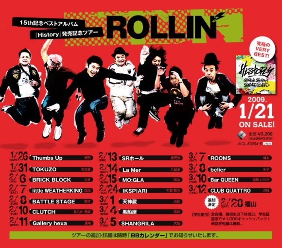 結成15周年を迎えるBLACK BOTTOM BRASS BANDの究極のVERY BEST。 7人編成のブラスバンドスタイルという唯一無二、ONE&ONLYのバンドスタイルでLIVEにレコーディングに大活躍。 その今までのBANDの軌跡をBBBBのみで1枚、今までコラボレーションしたアーティストとの音源で1枚の2枚組をリリース。 ベストアルバム「History」の発売を記念して「全国ツアーinいわき」を行います! ■3/10(火) ■BLACK BOTTOM BRASS BAND ■開場19:00/開演20:00 ■\3,000・学生¥1,500(D別) ◆【15th記念ベストアルバム『History』発売記念ツアー 〜ROLLIN