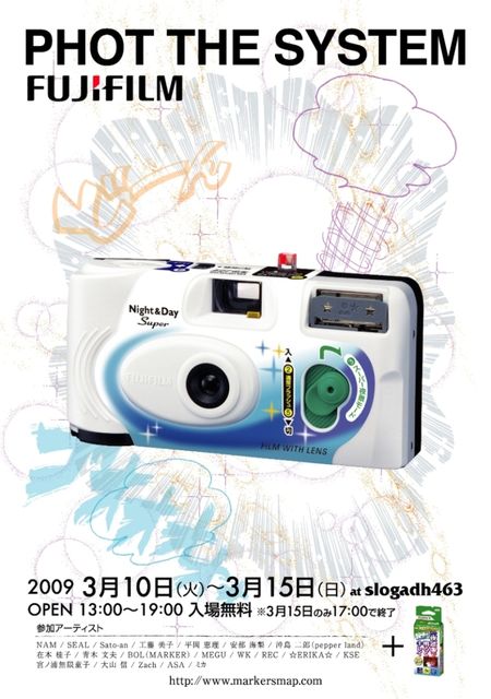 写真展のお誘い 初の試みはFUJI FILMさんとの企画 中学校以来の感覚 写るんですを使った、素敵な合同展をMARKERで企画 下は小学生、上は還暦を向かえた方までの表現の一部 是非、遊びに来て見ては。。 PHOTO THE SYSTEMとは。 この企画は企画者である私自身の経験とたしかに時代を変えた何かが「写るんです」にはあった。 今の世の中デジタル化現象により記憶に残す物から記録に残す事が増え、次第に物の大事さや楽しさなど純粋な部分である所が端折られ、簡単に良い物だけの薄い世の中になってきている様