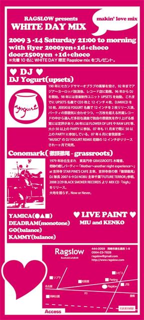 3/14土曜日、Maikn' love MIX at Ragslow愛知県岡崎