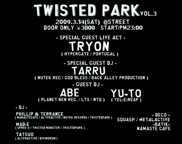 トランスミュージック黎明期とされた時代に与えた多くの感動を、今一度甦らせるべく作り上げた Underground Freaky Party 、「TWISTED PARK」。
