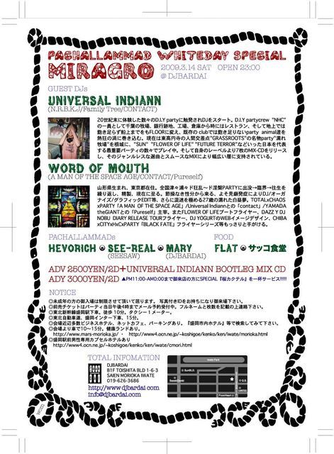 管理人様 再度の告知を失礼致します。 PACHALLAMMAD presents (((MIRAGRO)))