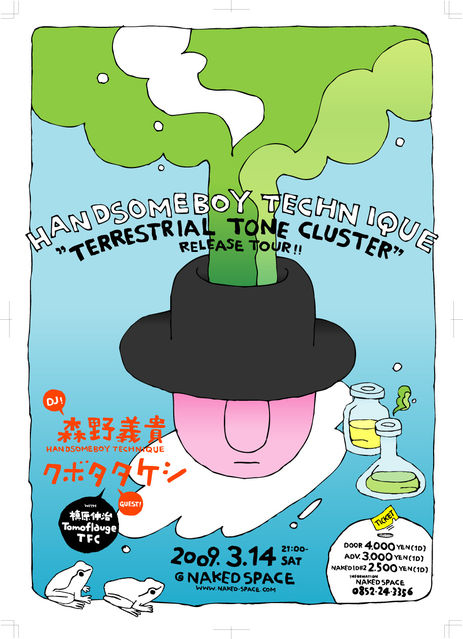 昨年11月に4年連続開催(!)し大盛況だった"TRIPLE TRAVEL"から早4ヶ月、ニューアルバムを携えてHANDSOMEBOY TECHNIQUEこと森野義貴、緊急再来松!1stアルバムが日本のみならず海外でも高い評価を得ただけに今作も期待大!しかも今回のリリースに花を添えるスペシャルゲストとしてクボタタケシ!この豪華組み合わせを見逃すテはありませんよ〜。ぜひともお越しください!!!! 2009.03.14.Sat 21:00〜 NAKED SPACE presents [ HANDSOMEBOY TECHNIQUE "TERRESTRIAL TONE CLUSTER"RELEASE TOUR!! ] GUEST DJ : 森野義貴( HANDSOMEBOY