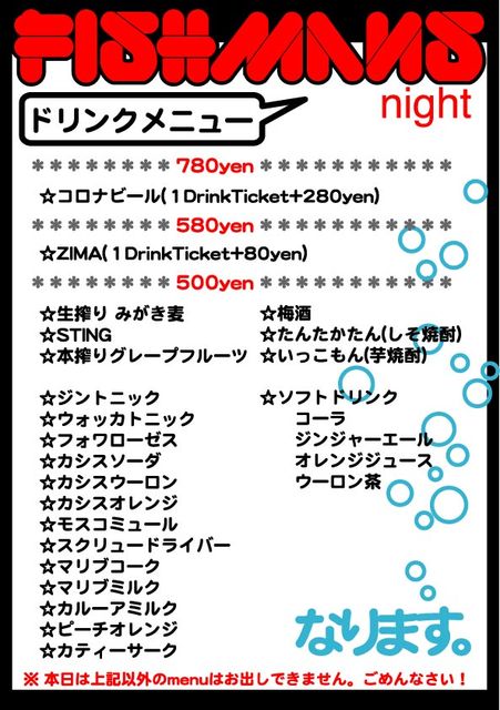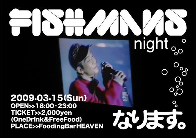 *************************************************** ☆☆重要なお知らせ☆☆ 現段階におきまして参加ボタンを押していただいている方が 当店のキャパを越えてしまっております。 当日はかなりの混雑が予想されます。 精一杯のサービスをさせていただきたいと思っていますが ご迷惑をおかけしてしまう事もあると思いますので 予めご了承の上ご参加お願い致します。 *************************************************** こんにちは! 今年も板橋区成増にあるfooding bar HEAVENにて 『FISHMANS NIGHT 2009@成増HEAVE