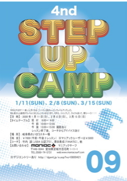 管理人様、告知失礼いたします 3月15日(日) めいほうスキー場にて 『4th STEP UP CAMP』 を開催いたします 詳細は、フライヤーのとおりです パークに入りたいけど入ったことのない人! いませんか? このキャンプではパークに入ったことのない人や 数回しか入ったことのない人でも コーチが基礎となる動きをお教えいたします 1人参加でも大丈夫です! このキャンプで「スノーボード」という繋がりが みんなを仲間にしてくれます なかなか、パークに入れるような友達がいないって人も このキャンプで他