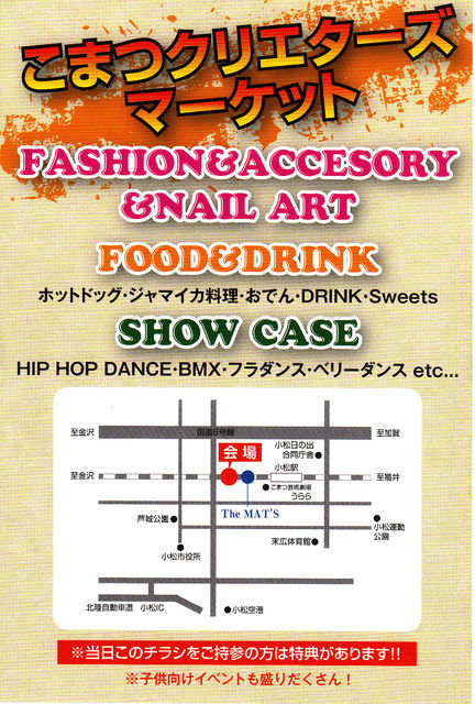 3月15日(日)PerformingNight vol.4 場所:TheMAT'S(http://www.the-mats.com/) 時間:14:00〜20:30(OPEN13:00) 入場料:1000円(BABY☆HIPS会員証提示で500円、MAT'Sメール会員500円) 【内容】 BABY☆HIPS歌とダンスのショーケース ゲストショー MARIO(from osaka)、ape(from ISHIKAWA)、SALVIA (from ISHIKAWA) 『灘B』ダンスバトル Vol.5 ■ソロバトル50名募集!!(年齢制限なし) 【ジャッジ】 YUKI(O.G.S)、HIROKO(ape)、MARK(MASTER TRIBE) 【BATTLE DJ】 DJ MIG ■キッズ2on2(中学