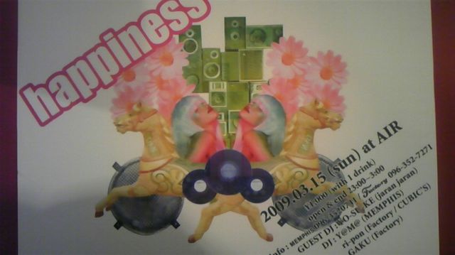 イベント告知でーす 申し訳ない 56会ではないんだけど、、、 今回、セレクトショップMEMPHISの、DJ Y@M@さんのご好意により、、 わたくしコスケ、DJデビューすることになりました まぁ〜、56会ってわけじゃないけど、皆に来てもらいたいなぁ〜と思って ペーペーDJで下手くそなもんで、なにとぞ皆に盛り上げて助けてもらいたいなぁ〜と 技術は下手だろうけど、選曲はアゲアゲでいくんでヨロシク アゲアゲHOUSEで