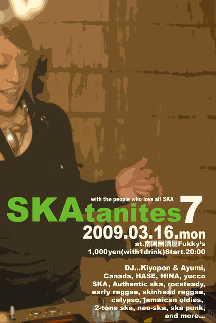 今回でもう7回目★スカタナイツ★ 3月16日(月) 【SKA-TANiTES vol.7】 @南国居酒屋Fukky's 1000円(with 1drink) DJ KIYOPON & AYUMI (BIGGA BELLY) CANADA HINA(らぶひな) HASE yucco