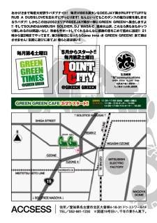 管理人様告知失礼します。 2009-03-19 (木) SOUL FORCE & GREEN GREEN PRESENTS RIDDIM RIDER vol.3 @GREEN GREEN (名古屋市北区大曽根4-18-31 ドゥ・エトワール1F) [OPEN / START] 9:00pm−4:00am [TICKET] MEN:¥500,LADIES:FREE ※共に入場時別途1ドリンク¥500が必要です。 GUEST SOUND> KASHIHARA REGULAR DEEJAY> CACTUS(SOUL FORCE),CANNON BAZOOKA,FRESH X,INAZUMA-K,JAJA-G,NEO HERO,PITBULL FIGHTER,RJ(SOUL FORCE),TION(SOUL FORCE) REGULAR SOUND> DJ MASA-C,風林火山灰 オープンマイ