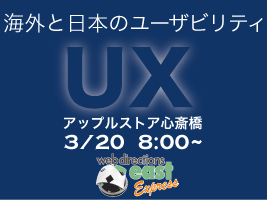 大阪でも「Web Directions Express」を開催いたします!! 席の確保はできないのですが、ぜひ多くの方に参加表明をしていただきたいです。 テーマ:『海外と日本のユーザビリティ』 Daniel Bruka氏が2008年WebDirectionsSouthで披露したユーザービリティのスライドを踏まえて、 オーストラリアで行われたWebDirectionsSouthに参加した菊池氏がご紹介いたします。 【アジェンダ】 ・「世界のウェブ業界で活躍するスゴイ人紹介」 〜Daniel Bruka氏〜 ・Daniel Bruka氏から学ぶ、海外のユーザビリティ思想 ・日本にも通用するユーザビリテ