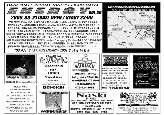 今回のDANCEHALL NIGHT ENERGYはSPECIAL GUEST SOUNDにCASINO891を迎えてのお届け!!