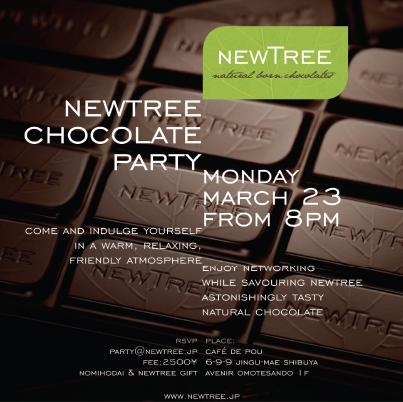 Cafe de Pouでも扱っている、ベルギーの薬膳チョコレート「NEWTREE(ニュートゥリー)」が試食できるパーティです。気さくなフランス人やベルギー人も来ますから、ちょっとした国際交流パーティにもなります。