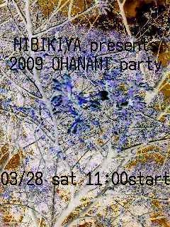 響家 音泉祭 ohanamiparty 2009.03.28 ★★★★★響家 音泉祭 17 ohanamiparty★★★★★ 03/28 SAT 2009 時間 11:00START〜バッテリーの続く限り・・・。 場所 東京都足立区 舎人公園 http://www.mapion.co.jp/here/all/090326/mapi0413692090326183710.html ACCESS 都立舎人公園 :日暮里・舎人ライナー「舎人公園駅」から下車徒歩すぐ DJ yu (JPN) hibikiya ani (JPN) hibikiya guest DJ ART-works ani (JPN) hibikiya ☆今回は、舎人公園