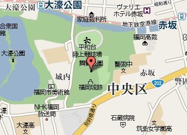 舞鶴公園でお花見開催します ■日時: 3月29日(日)10時〜16時(途中参加・途中退場OKです) ■場所: 舞鶴公園内(だいたい地図の場所あたりの予定です。細かい場所は、追って連絡します) [アクセス] 地下鉄「赤坂」「大壕公園」下車 徒歩8分 西鉄バス「平和台・鴻臚館前」「城内美術館東口」「大手門」下車 徒歩5分〜8分「赤