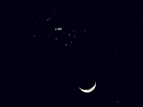 宵のころ、月齢4の細いお月さまと スバルとしておなじみのプレアデス星団(M45)が とても近づいているのを見ることができます。 細いお月さまは、夕方から楽しむことが出来ますが、 プレアデス星団は、少し暗くならないと見えてきません。 またその月の近くには、オリオン座も見えますので、 そちらもあわせて楽しんでくださいね。 細い月ですので、その月明かりに邪魔されることが少なく、 肉眼でも、わりと見えやすいと思います。 地球照も見れますので、ぜひお楽しみくださいませ☆ あたしの都合で、お空見の会が少し飛んでしま