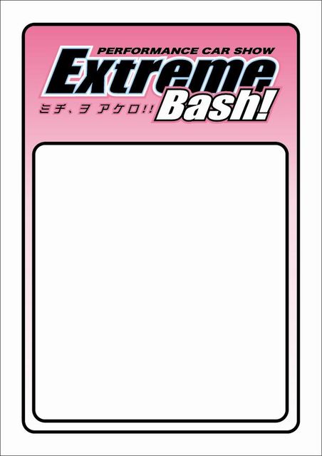 開催日時とイベント詳細が決定いたしましたのでお知らせいたします。 ● エントリーに関する情報は、「協賛各社」または「おわらサーキット」「X-BASH事務局」にお問い合わせ下さい。 ●当日はエントリーの皆様に「Extreme-Bash!!角ステッカー」をご用意しております。(ご来場の方にも事務局にてアンケートに答えてGET!!) ※ ”EXTREME-BASH”はご来場頂きました”皆様が主役”です!そして参加者様と協賛各社様の有志があって初めて成り立っております! 今回はサーキットイベントですが、ジャンルを問わず、車好きの皆様と