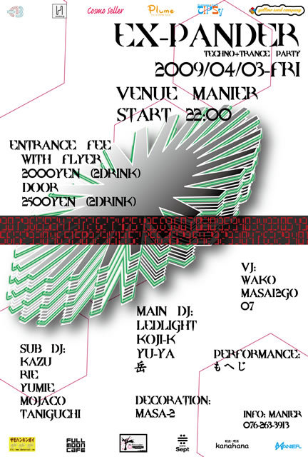 OPEN22:00~ ADM1500YEN B4 1AM LADYS FREE!!(1時まで女性の方は入場無料です)