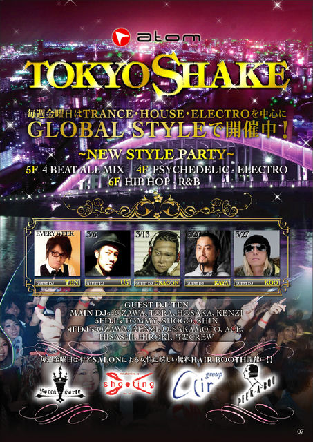 OPEN22:00~ ADM1500YEN B4 1AM LADYS FREE!!(1時まで女性の方は入場無料です)