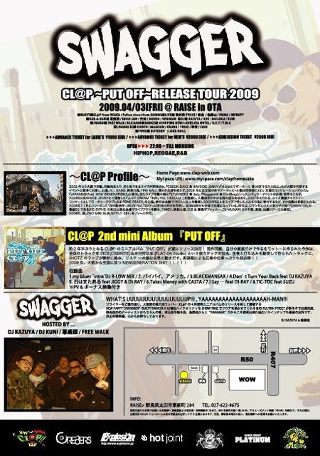 大阪発実力派RAPPER:CL@Pの5月発売の2ND MINI ALBUM 「PUT OFF」のリリースを祝して開催するNEW PARTY 「SWAGGER」。