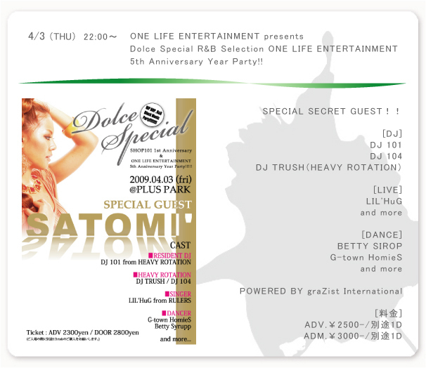 5周年のYEAR PARTYを兼ね、ここ『PLUS PARK』でゲストを迎え“Dolce Special”開催です!!