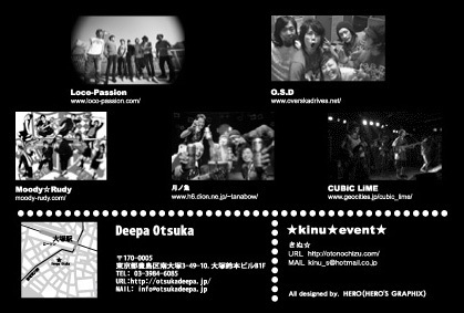 【BAND】 Loco-Passion(from大阪) O.S.D.(from大阪) CUBiC LiME 月ノ魚 Moody★Rudy [DJ] ■ko-ji.net(O.S.D.) □Se-1 ■ムライアン Deepa Otsuka 東京都豊島区南大塚3-49-10.大塚鈴本ビルB1f http://otsukadeepa.jp/venue/home