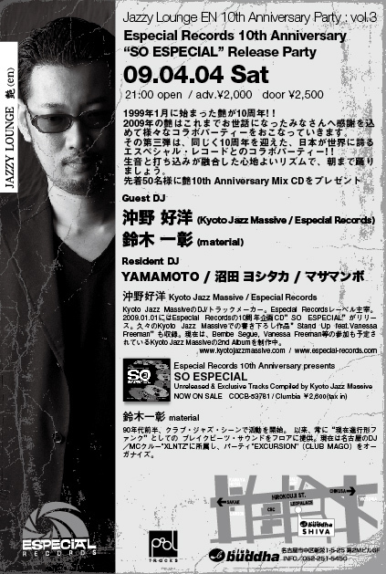 『SO ESPECIAL』 Release Party で沖野好洋さんがclub BUDDHAに登場です☆