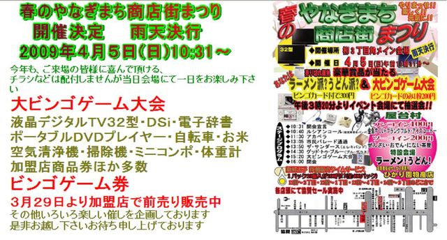 【春のやなぎまち商店街まつり】 日時:4月5日(日) 10:31〜 場所:柳町3丁目駐車場 特設ステージ (奈良県大和郡山市 近鉄郡山駅下車すぐ) ♪ならアカペラサークルは 11:30〜90分 サークルの中のいろんなバンドが出演します♪ ならアカペラサークルは第1回目から、毎年出演させていただいております。 写真1:地図 写真2:商店街さんのポスター 写真3:2008年の写真