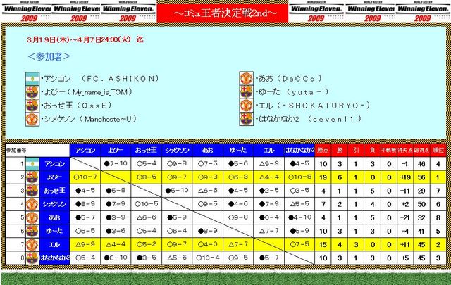 最初に!参加の際、使用チーム及びウイイレ専用IDの記載がない場合、 参加と見なしません。チームの後書き行為は禁止します。 また、今大会は大会形式や、試合結果報告方法が今までの大会と 異なりますので、必ず規定を確認の上、参加表明お願いします。 相手にも迷惑がかかる為、全消化確実に消化出来る方のみご参加ください。できそうもない方は、参加をご遠慮願います。 第6回〜第10回大会及び特別枠フリー大会2ndで、歴代大会上位者表彰トピにて 表彰された方限定による、コミュ王者決定戦2nd[PS3版]を開催致します コミュ最強をか