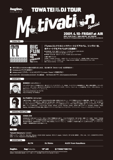 第12回目を迎えるMOTIVATION@AIR。好評発売中のアルバム『BIG FUN』がiTunesエレクトロニックチャートで1位、米チャートでも12位を飾り、先日のリリースパーティでは1000人以