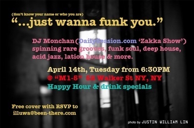 April 14th 6:30PM~2:00PM@ "M1-5" - 52 Walker St. (btwn Church & B'way)