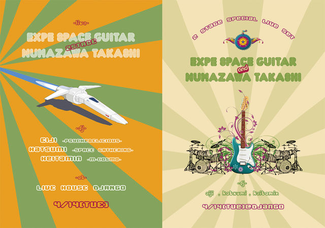 告知失礼致します。 EXPE SPACE GUITAR & 沼澤尚 2 STAGE SPECIAL LIVE 4/14(tue)@Django -LIVE- EXPE SPACE GUITAR & 沼澤尚 DRUMS -DJ- EIJI (PSYCHEDELICIOUS) KATSUMI (SPACE GATHERING) KEITAMIN (m-cosmo) adv 2,000yen day 2,500yen open 20:30 1 STAGE LIVE 22:00 2 STAGE LIVE 24:20 ☆ EXPE SPACE GUITAR ☆ 宇宙未来形スペースギタープレイヤー!! 独自の音響サウンドと個性的な演奏で、アンダーグラウンドシーンや好事家から常に注目される大阪出身の独創的ギタリスト。 多量のコン