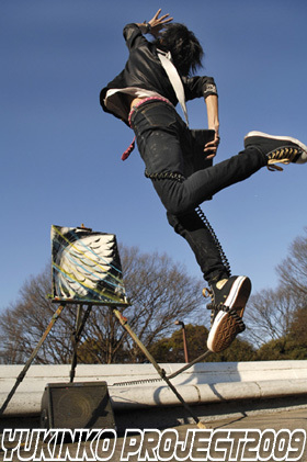 管理人様、度々の告知失礼します。 こんばんは、 ONE DROPダイニングスタジオのはなです。 皆さんユキンコ アキラって知ってますか? 東京を拠点にライブペインティングをやっているアーティスト なんですが肩からCDJ&リズムマシーンを下げて踊りながら インスピレーションのおもむくまま絵を描き上げる 唯一無二のスタイルで恐らくTVで観た方も多いのでは? 先月から東京での活動を一旦休止して日本の最南端沖縄から2週間単位で北上、最終的には約1年かけて日本中をライブペインティングで旅をする・・・・ そ