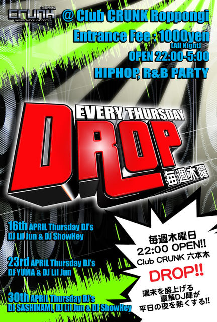 *今月の木曜日はOPENING SPとしてエントランスにて『RYOTAのMIXI見ました』と言って頂ければ1時まで入場無料でご入場出来ます!!