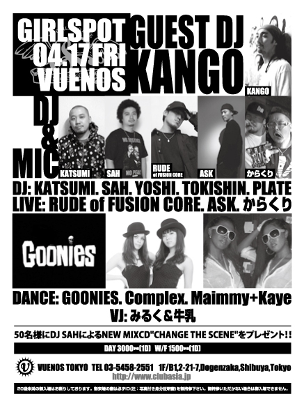 PRICE: Entrance¥3000with1DRINK with flyer¥2500with1DRINK