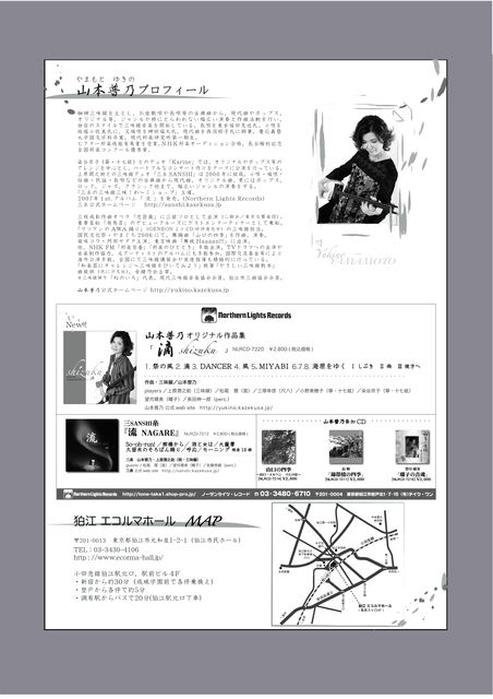 こんにちわ。 細棹三味線を主に、小唄・端唄・長唄・現代曲にオリジナルと、マルチな活動をしている三味線奏者 山本普乃です。 映画「舞妓Haaaan!!」のお座敷シーンで端唄を弾き唄いしたりもしています。 この度、これまでの古典、現代様々の活動で培ったもの全てを駆使して、初のオリジナルコンサートを企画開催することとなり、是非、細棹三味線を愛する方々にお聴き頂きたく、ご案内させていただきました! 昨年暮れに発売となったアルバム「滴」の発売記念も兼ねた今回のコンサートは、笛、尺八、箏、十七絃、囃子、ウッドベース、パーカッ