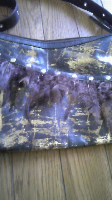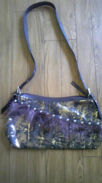 ベースは焦げ茶色で、ゴールドのメタリックのバッグです。 茶色の羽が付いています。 外側は大きなポケットが1つと、内側はファスナー付きのポケット1つと、普通のポケットが2つあります。 大きさは縦が約21センチ、横が約40センチです。 見た目よりは物が沢山はいると思います。 ※中古品になりますので、ノークレーム・ノーリターンでお願いします。 ※送料は郵貯に先振込でお願いします。 ※発送は定型外かエクスパックになります。