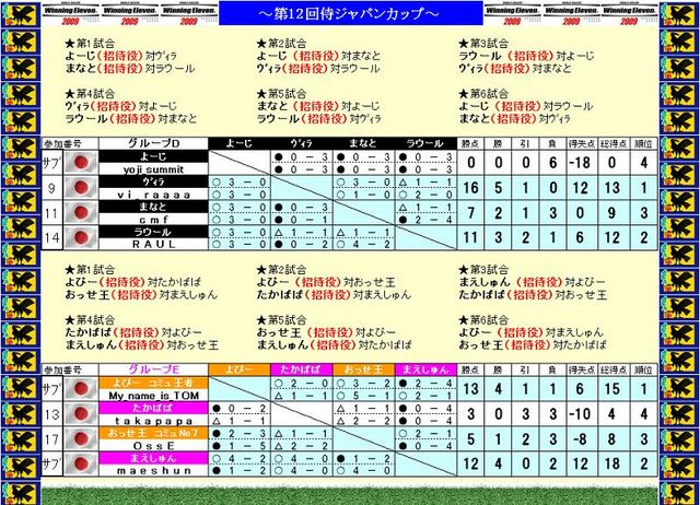 始めに!今大会は今までの大会と予選突破条件やトーナメントの進め方なども 多少異なりますので必ず大会進行方法を理解されてから参加表明お願いします。 「予選コア日」は絶対にロビーに来てください。また、トーナメント決勝・3位決定戦に ついては対戦相手が確定次第、4名の都合の良い時間を調整しますので勝手に行なわないで下さい。 参加の際、ウイイレ専用IDの記載がない場合、参加と見なしません。 また、大会当日運営はロビーチャットにて行ないますので、ロビーにいるときは ロビーチャットを確認出来る画面状態にしてください。