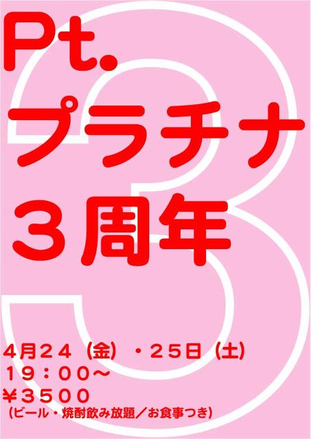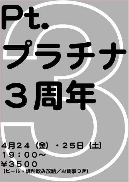前売り 3,000円 当日 4,000円 *共にドリンク代別途